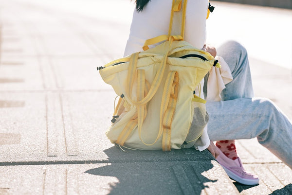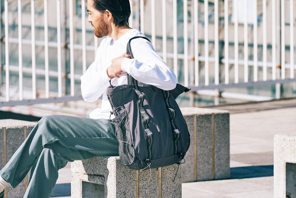 ショルダーストラップ付きで、用途に合わせて持ち方を変えられる。軽量ナイロンが身体にフィットし、長時間背負っても快適。